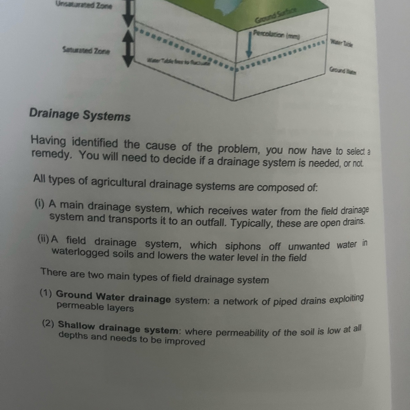 What are the TWO main types of land drainage systems?