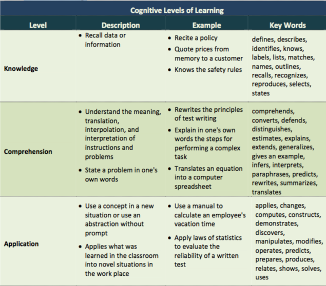 What is the cognitive domain’s third level of learning?