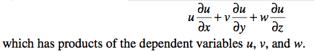 nonlinear, since the advective terms look like