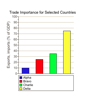 With Alpha’s exports and imports at 10% percent of its GDP, trade for it is of relatively little importance.