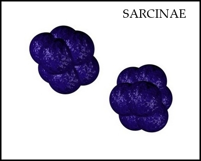 Bacteria cell shape; Those that divide in three planes and remain attached in cublike groups of eight