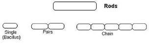 Possible shape of a bacterial cell. Plural: bacilli; little rods or walking sticks