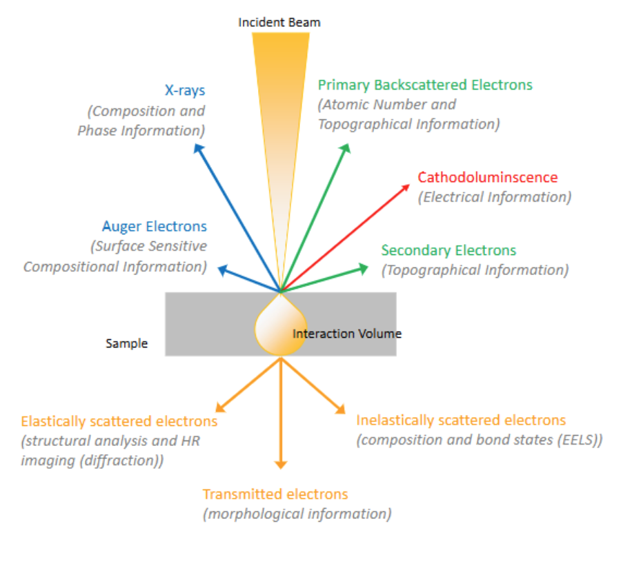 When an incident beam is shined at a sample, what are the three types of electrons that go through the sample? What do you learn from them?