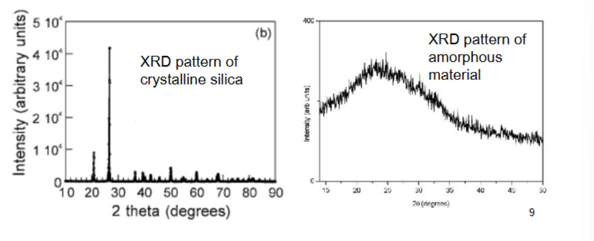What would the XRD pattern look like of a crystalline vs. amorphous material?