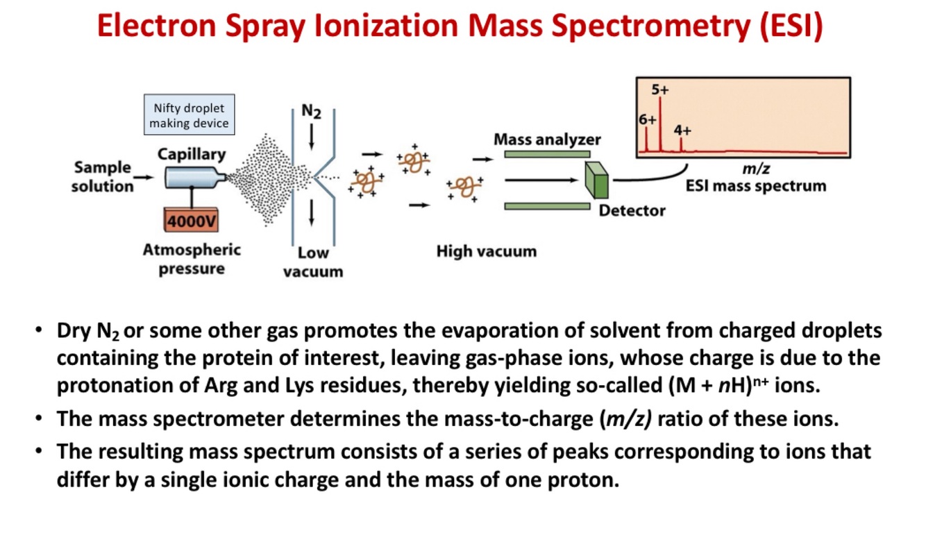 Explain how Electron Spray Ionization Mass Spectrometry (ESI) works.