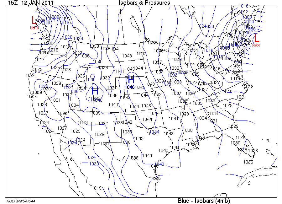 Isobars is a line on a wheat her chart that connnects areas of equal or constant barometric pressure.