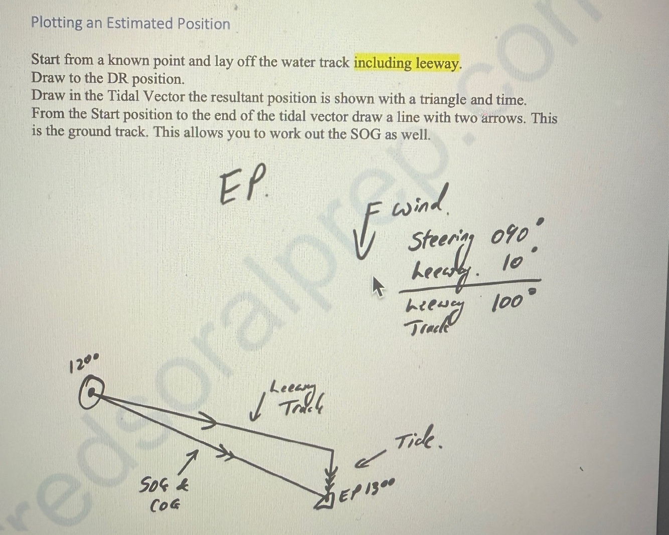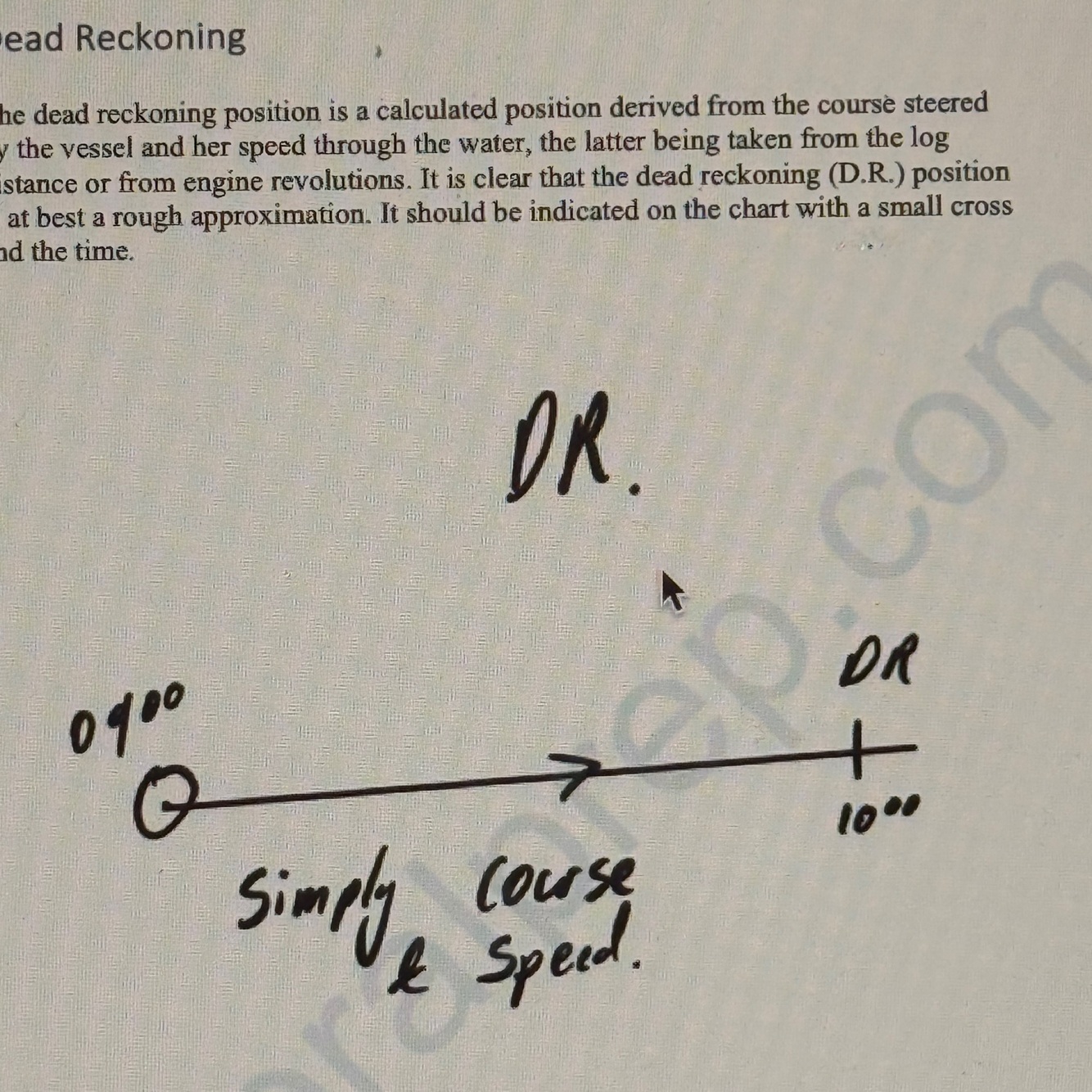 Calculated rough position derived from the Vessel’s course and STW.