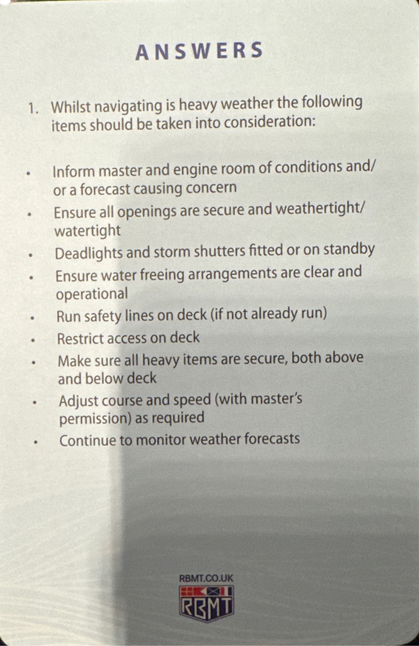 Master, watertight, dead light, Freeing arrangements, safety, lines, access on deck, secure, adjust, monitor conditions