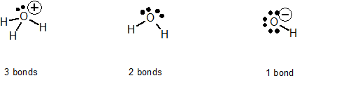 If oxygen is making three bonds, it is a cation and has a positive charge (see diagram).