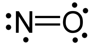 Nitric oxide has 11 valence electrons. Oxygen is more electronegative, so will end up with a full octet (two sets of lone e-pairs and a double bond with N). Nitrogen will be left with 3 lone electrons (and two bonds), as it is less electronegative, for a total of 7 electrons.