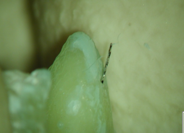 going to gently rotate it and pull it back until the apex locator tells u that ur no longer through the apex