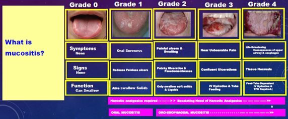Oral mucositis = reflects damage to epithelium