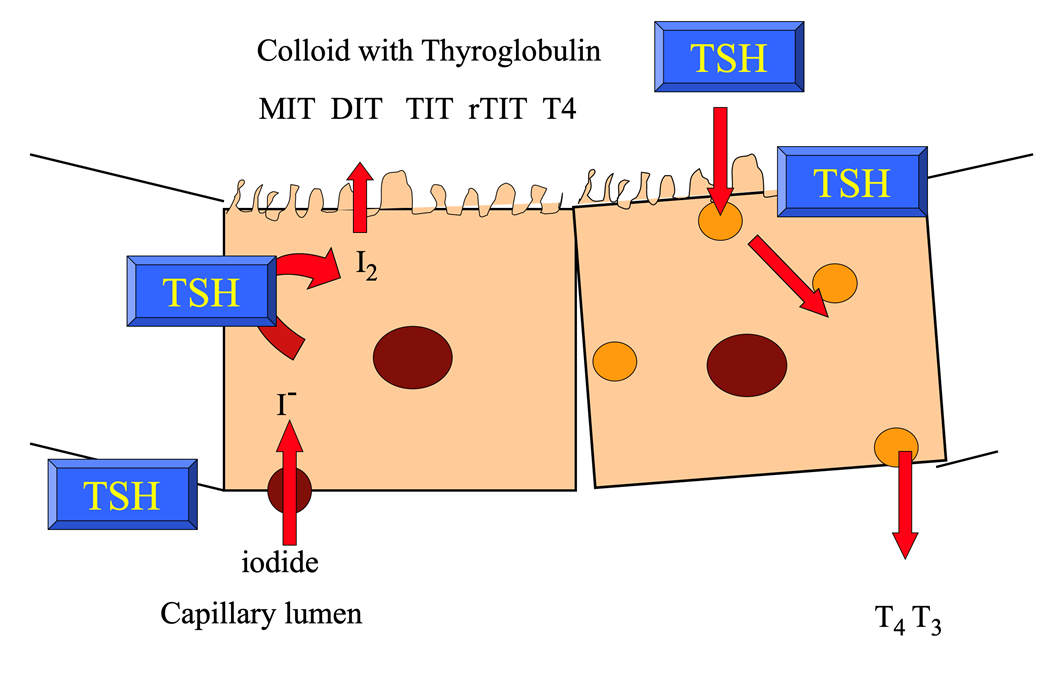 NB: hCG and TSH have similar structures (hCG has 1/10,000 activity of TSH) and so can stimulate same actions I.E. a string around the neck is used as a pregnancy test in Africa (hCG –> goitre)
