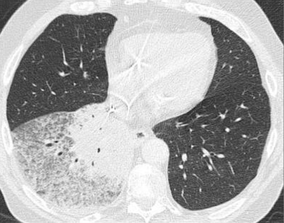 GGO with fibrosis, and cystic changes, irregular linear opacities