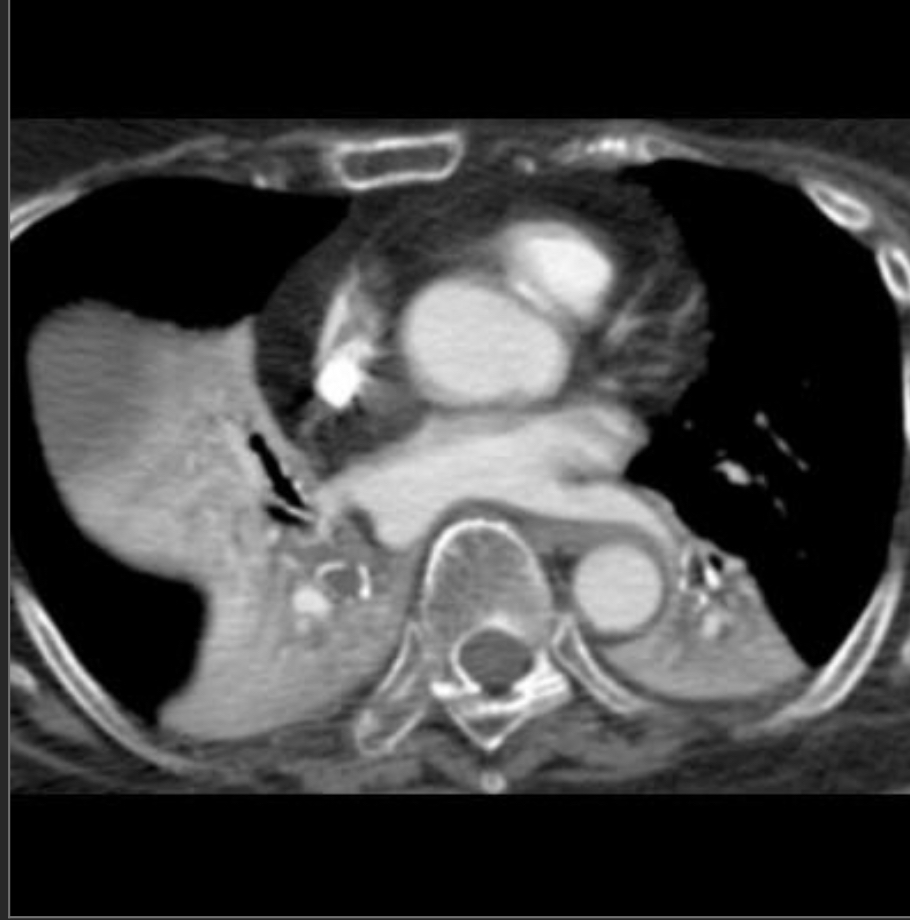 azygous vein and SVC may be dilated, reflecting the elevated central venous pressure necessary to maintain right ventricular filling.
