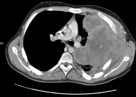 large extrapulmonary/soft tissue mass in an adolescent or young adult, may involve ribs/chest wall