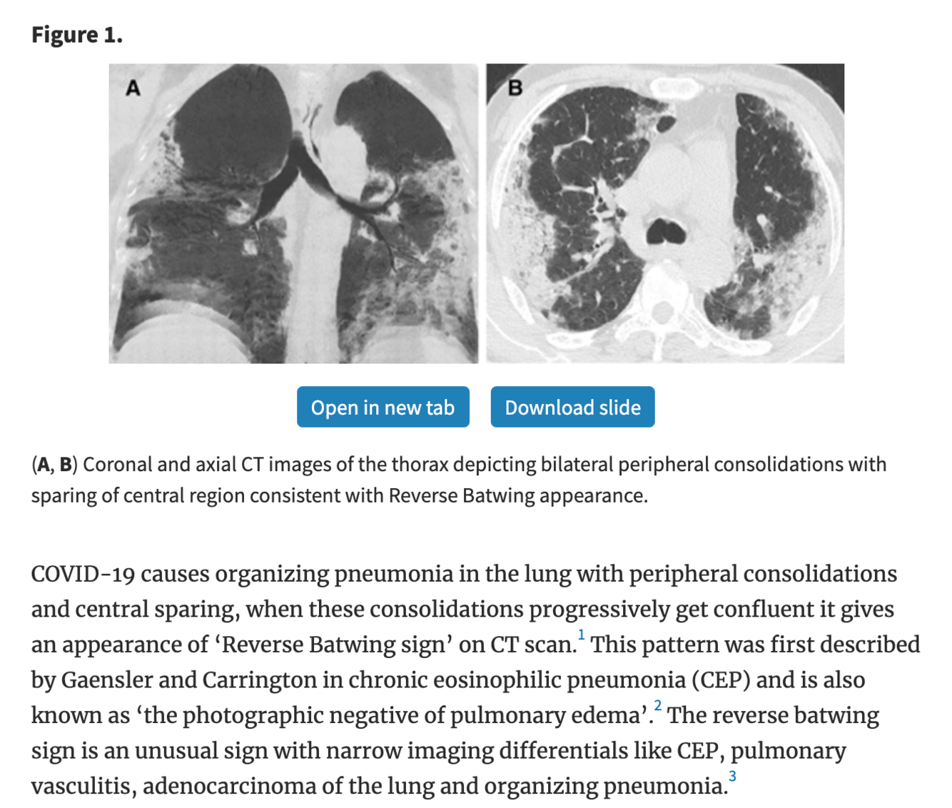 This refers to peripheral opacities of the lungs, sparing the perihilar region. It is a relatively unusual appearance with a relatively narrow differential