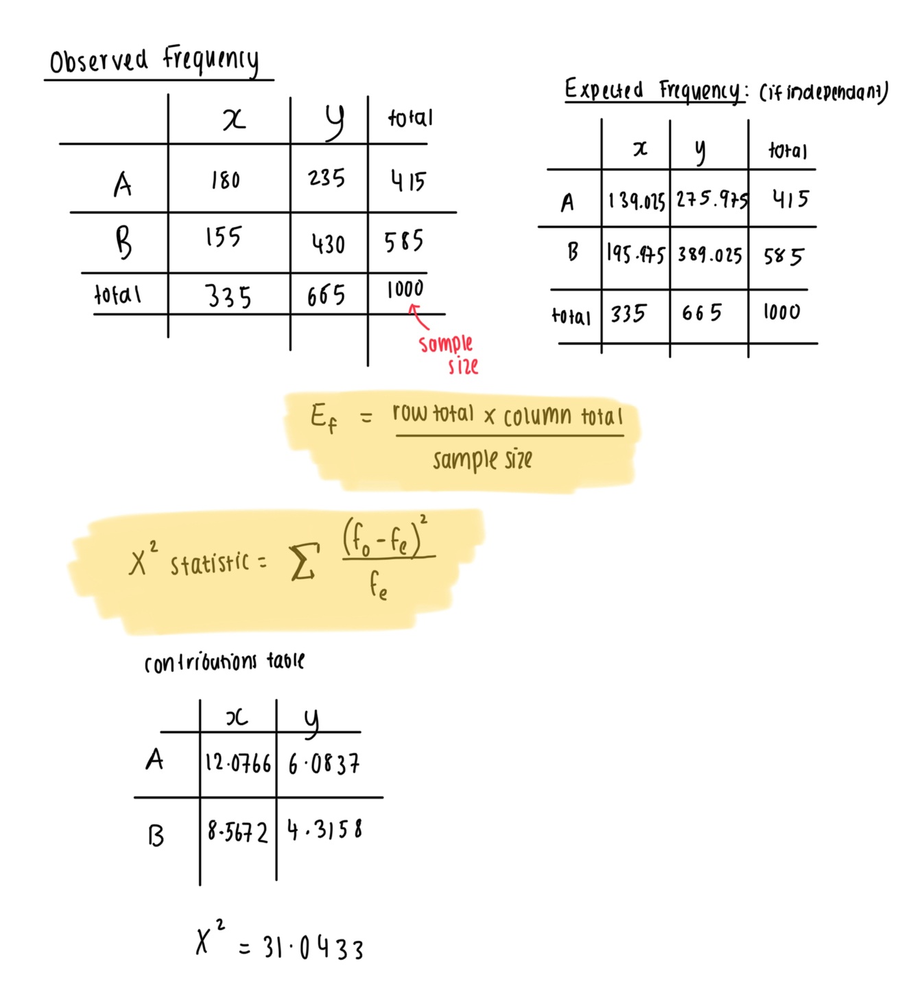 * the closer the contrinution to 0 the more similar the observed value was to the expected