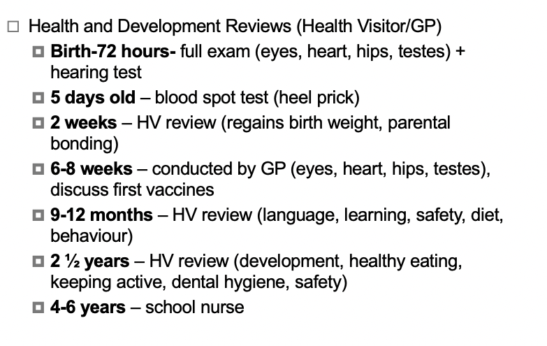 Check usually within 24 hours – physical examination – also checks for primitive reflexes