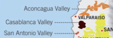 Which 3 grape varieties do you find most planted in Casablanca DO (that are well suited for its cool maritime climate)?