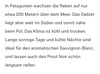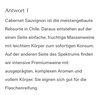 Intens Frucht, blumenbuquet, mittlerer Körper unes mittlere Säure