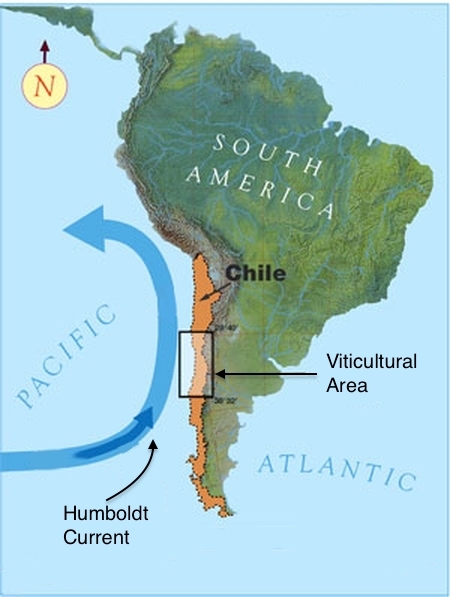 As the name implies, the run up the coast of Chile bringing protection to the main growing regions of the country from cold Antarctic winds. The river valleys of the ranges do allow some of the breezes through that help regulate the temperature.
