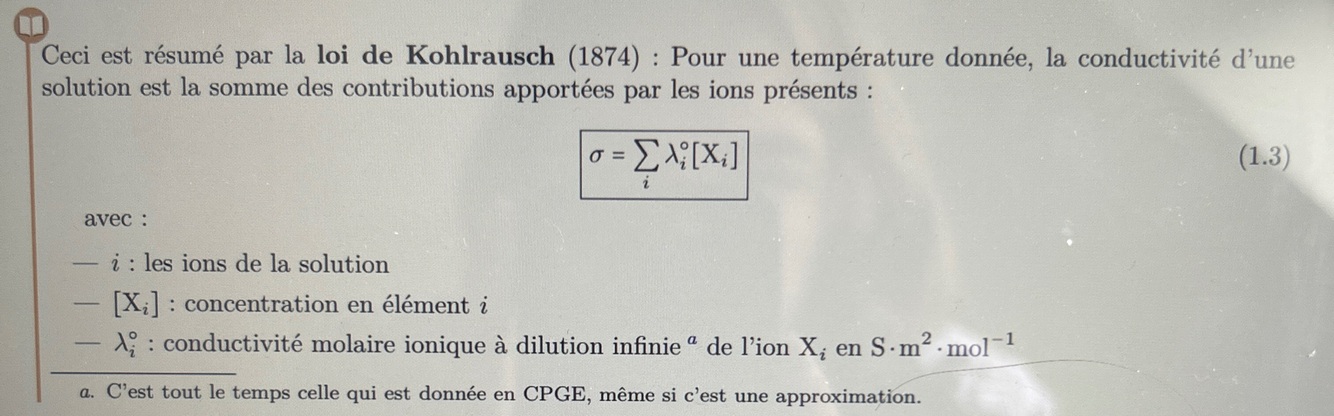 Rappeler la loi de Kohlrausch