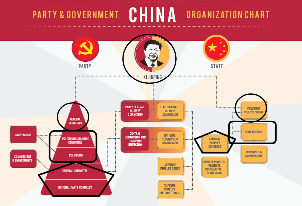Politburo Standing Committee (PSC) = the leading men = central group of leaders, mostly about Xi Jinping