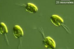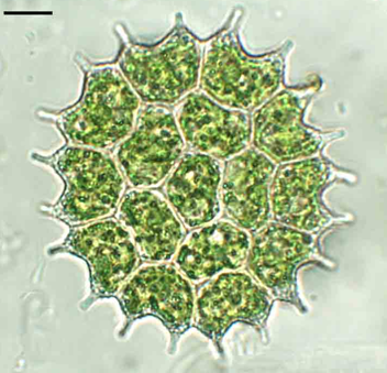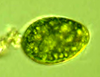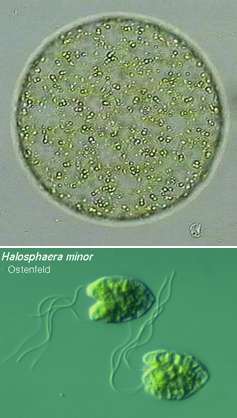 Alga showing two stages, a coccoid stage and a motile quadriflagellate stage