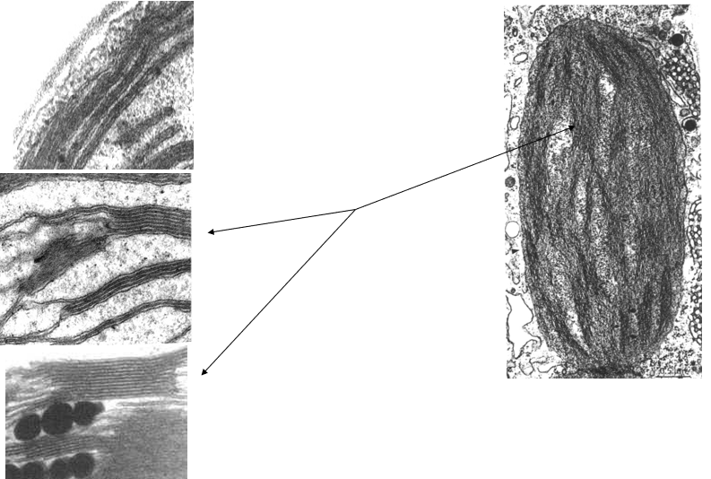 Within the chloroplast, the thylakoids are grouped to form lamellae, consisting of a number of thylakoid varying from 2 to 6. Sometimes lamellae are stacked resembling grana, and which are therefore referred to as pseudograna.