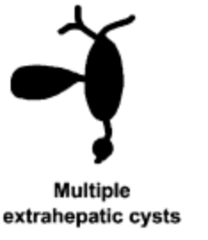What choledocal cyst has one extrahepatic cyst and many intrahepatic cysts?