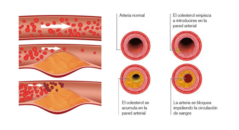 Con el colesterol alto, puede desarrollar depósitos de grasa en los vasos sanguíneos.