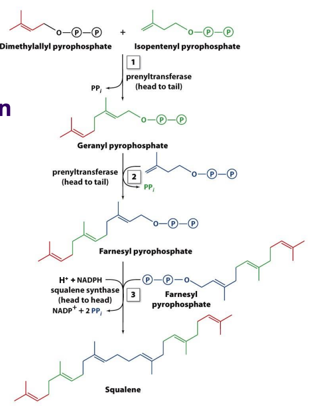 -3 molecules generat a C15, 2 C15 molecules make squalene