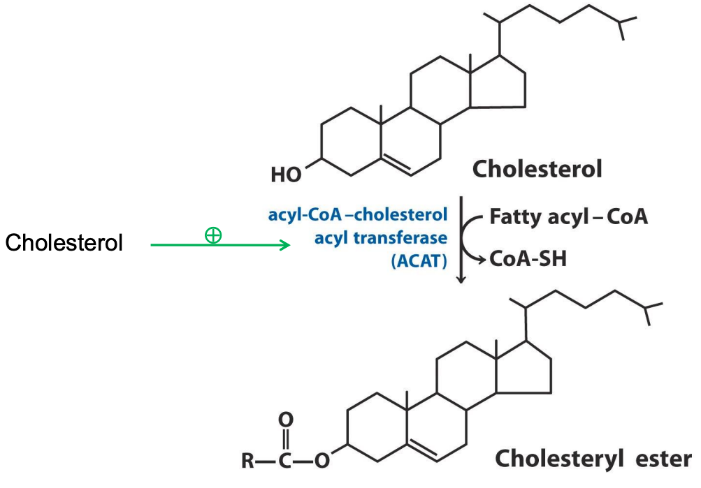 -ACAT: takes a fatty acid from coA to cholesterol to generate cholesterol ester
