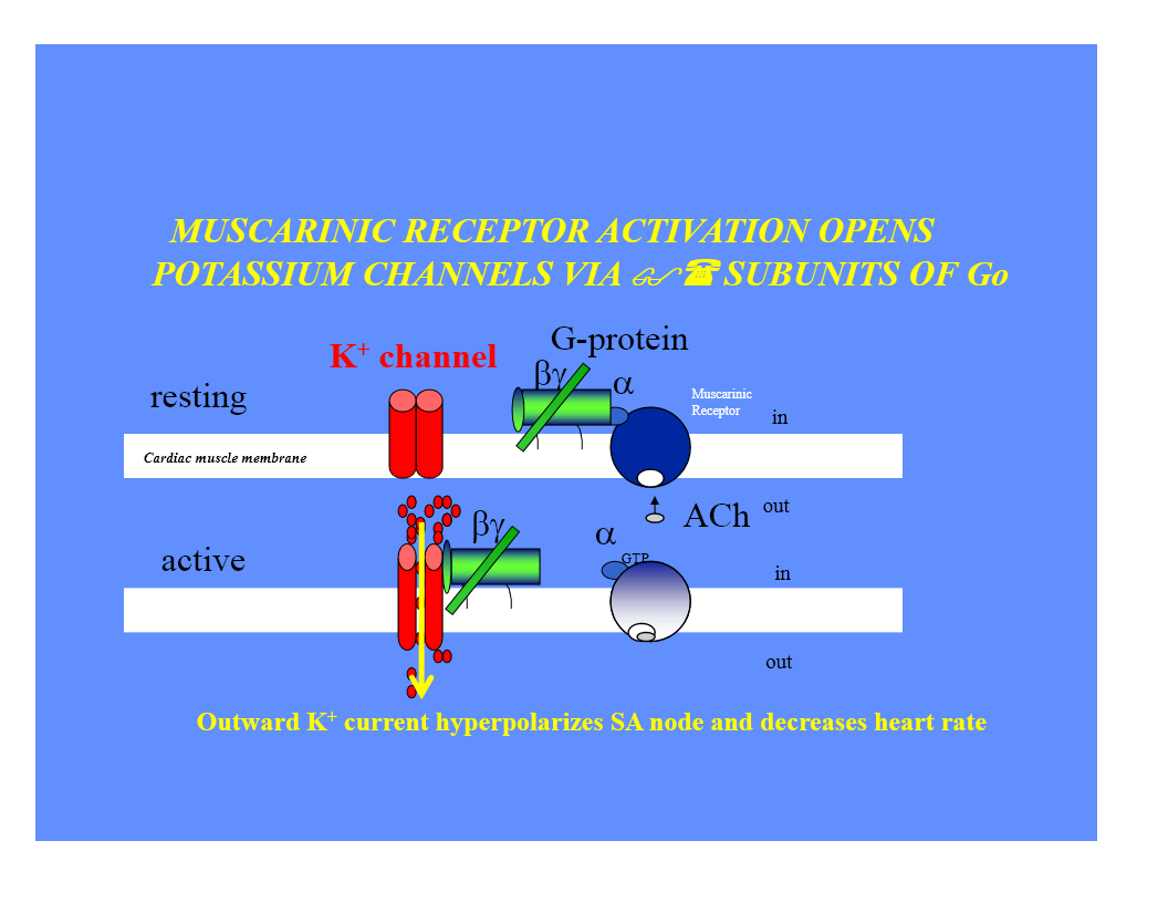 G-protein receptors opens potassium channels and generates the outward potassium currents to hyperpolarize the membrane