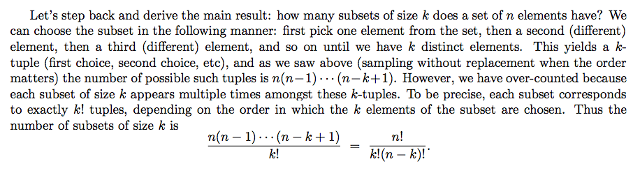 how many subsets of size k does a set of n elements have?