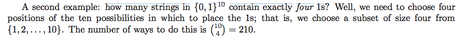 how many strings in {0, 1} 10 contain exactly four 1s?