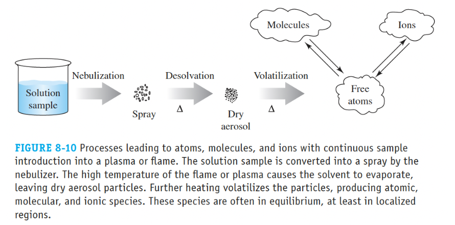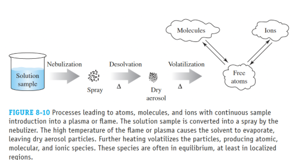 - During flame atomization, a solution is nebulized, and a large portion of the sample is often lost to drainage before reaching the flame.
