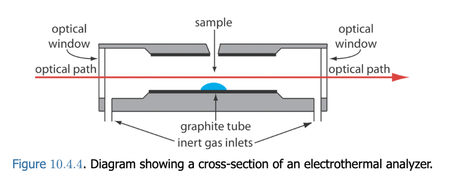 - In an electrothermal atomizer, the atoms are confined within a small graphite tube, and the average residence time in the optical path is increased to a second or more. This allows the detector to measure the signal from each atom for a longer duration.