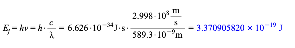 Calculate the energy of the average wavelength of 589.3nm for the two sodium emission lines corresponding to the