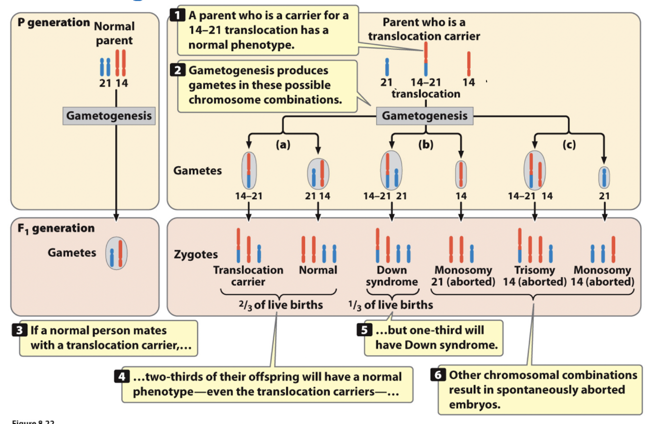 False. Individuals with a Robertsonian Translocation are phenotypically normal. They are are increased risk of producing abnormal gametes, also increasing risk for chromosomal disorders such as Down Syndrome.