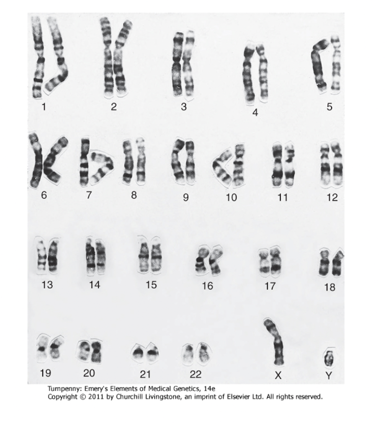 Flip to view a normal male karyotype.