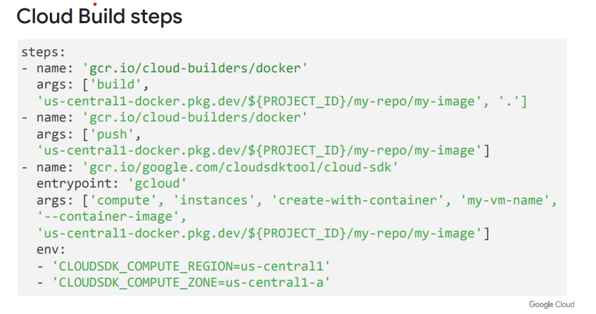 specifies a cloud builder, which is a container image that runs common tools. In this