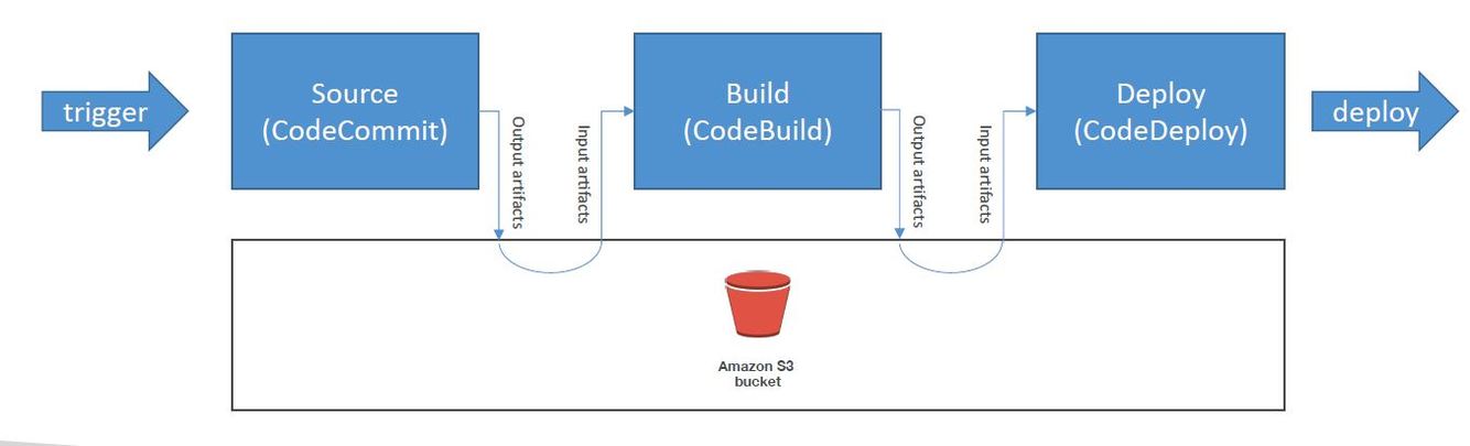 Each stage in the pipeline can create “artifacts” that are stored into and retieved from an S3 bucket