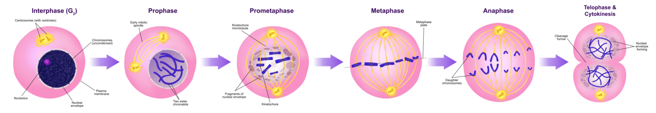 Se forman los centrosomas y migran a los polos de la célula y se forma el huso mitotico.