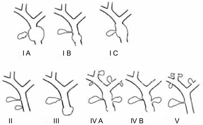 - Tipo V: dilatações únicas/múltiplas intra (Doença de Caroli)