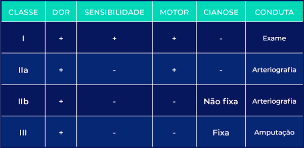 Paciente com OAA por embolia arterial, rigidez articular importante com cianose fixa no pé, esfriamento e livedo reticular até o joelho, qual a classificação de Rutherford?