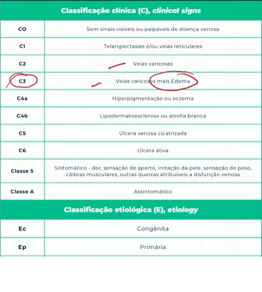 Paciente com veias varicosas e edema, qual a classificação de CEAP?