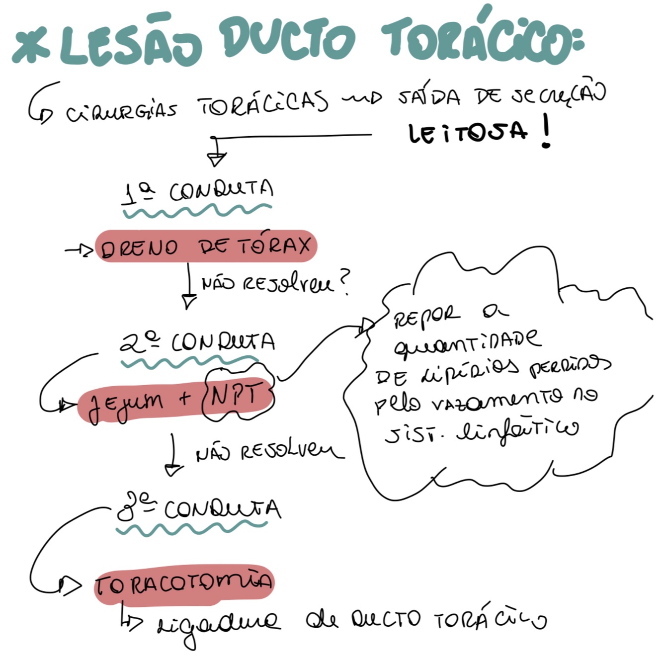 PO: quando suspeitar de lesao de ducto toracico? Apresente o fluxograma e cdt?
