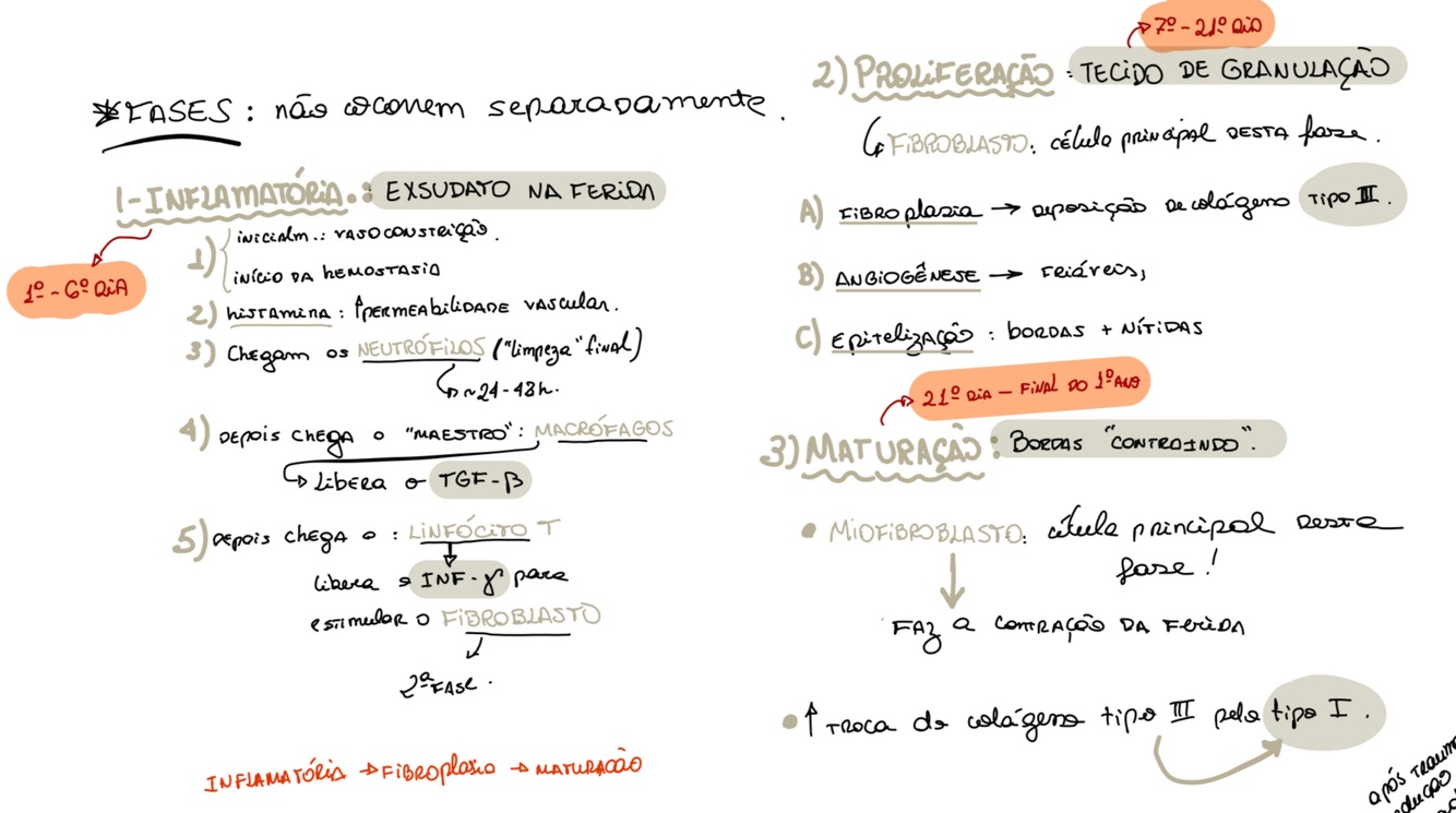 Sobre as fases da cicatrizaçao: duraçao caracteristicas e celulas de cada etapa